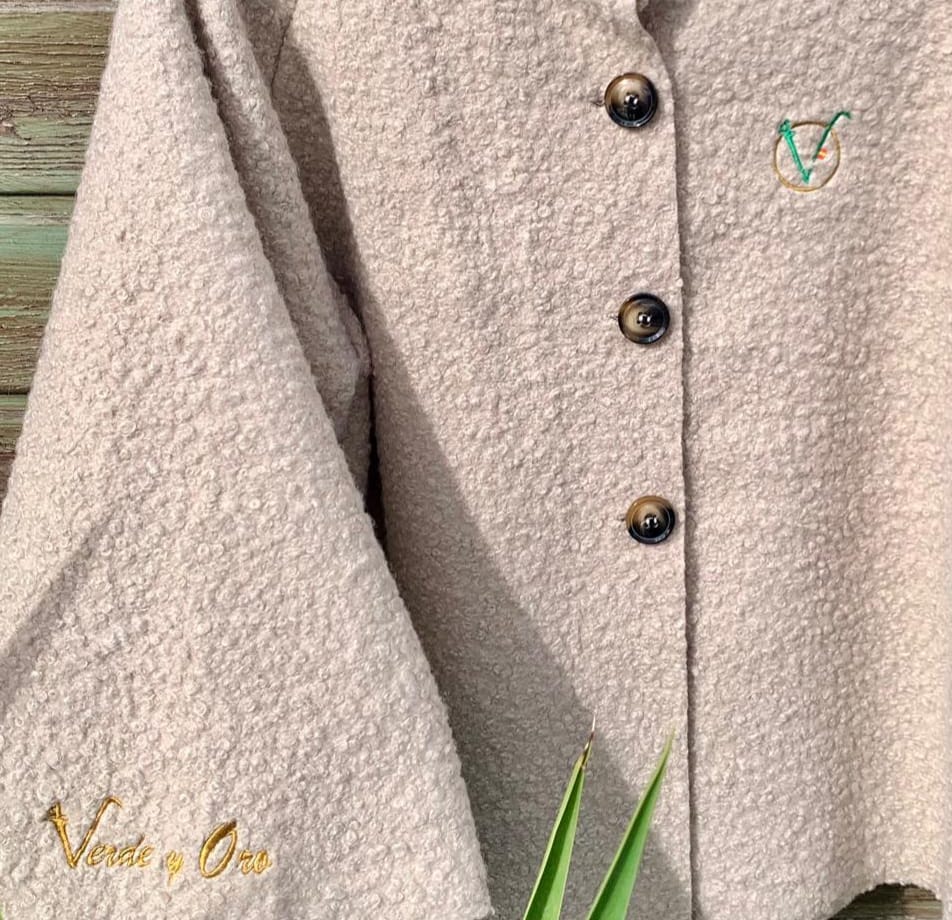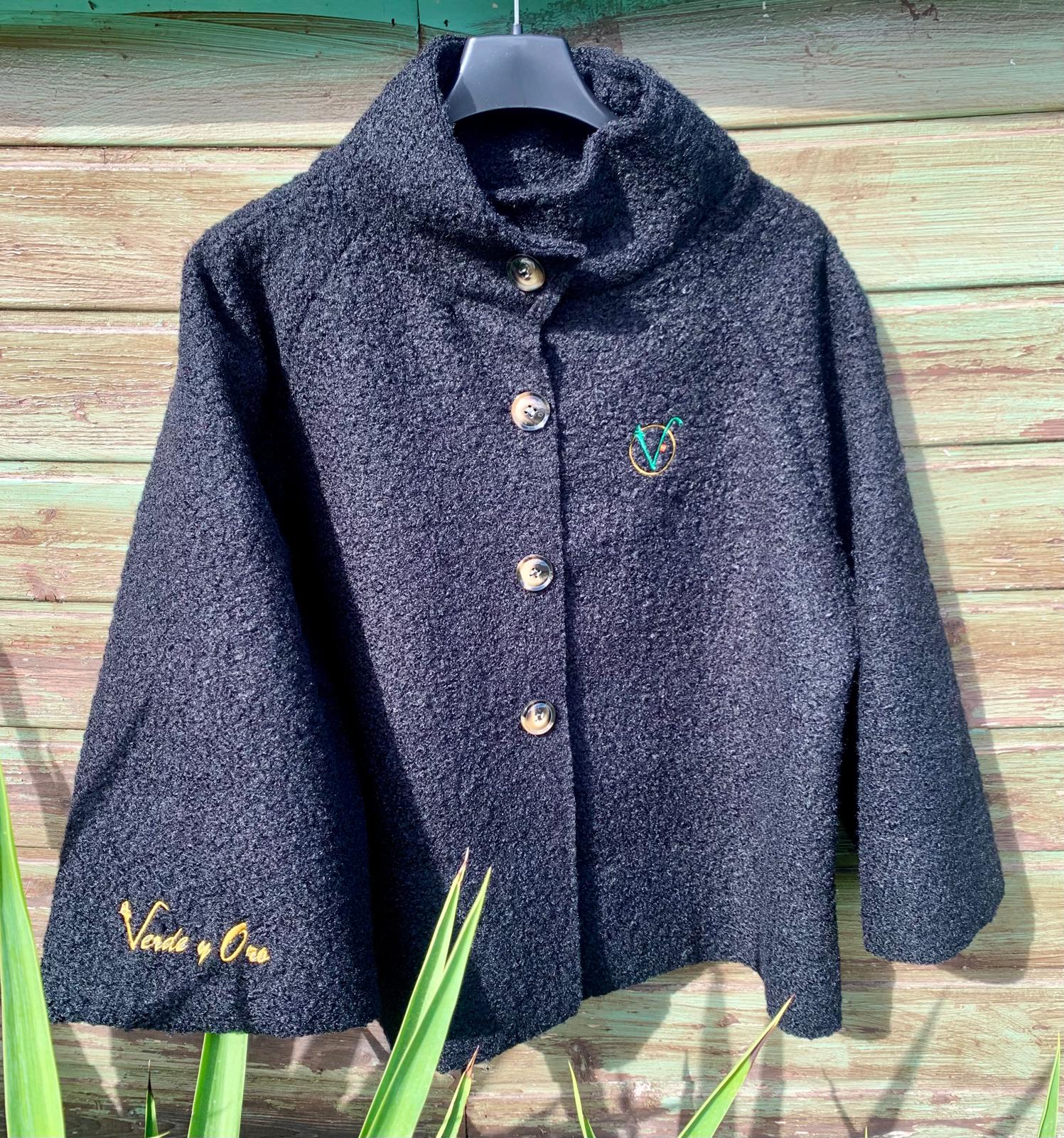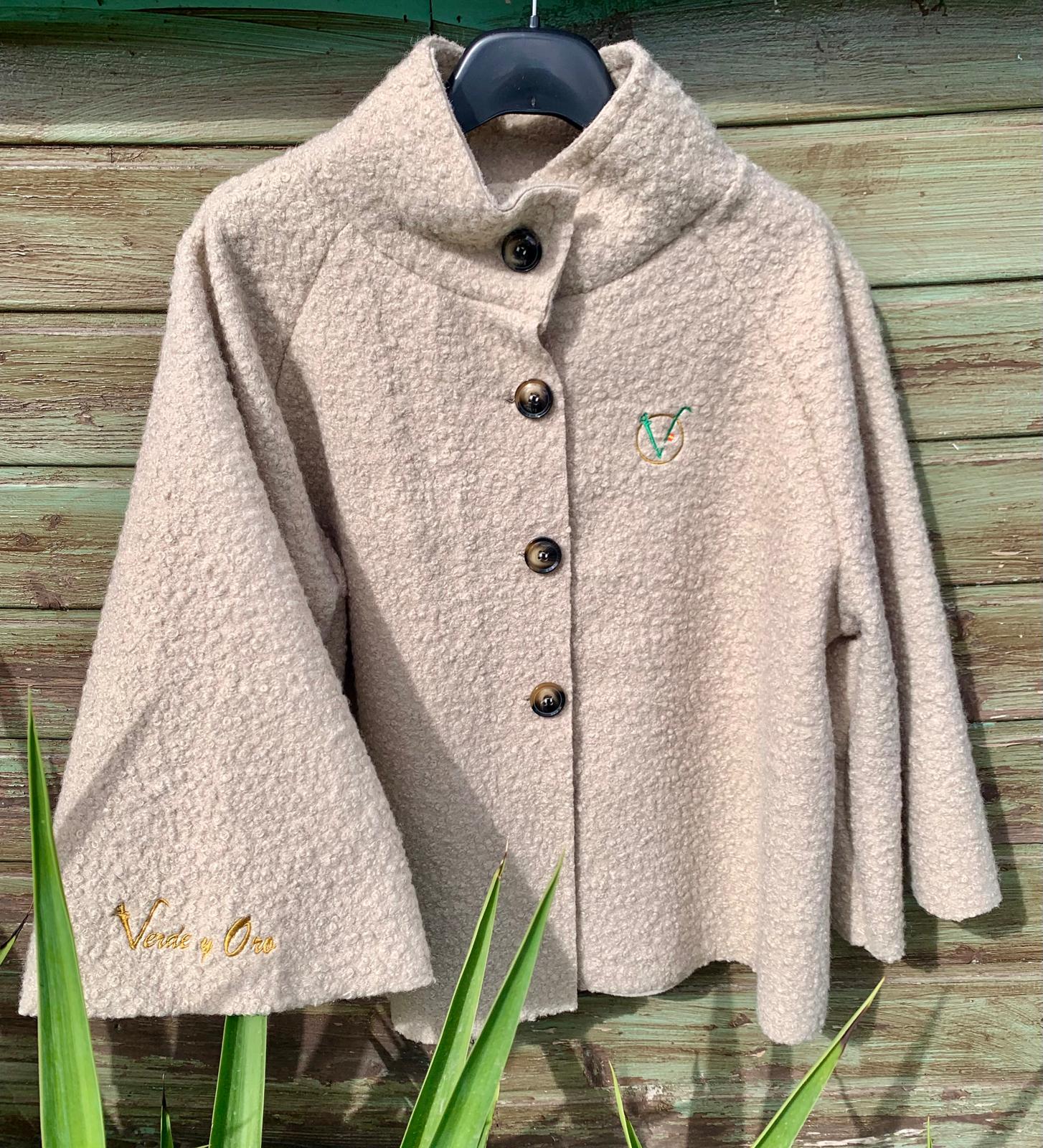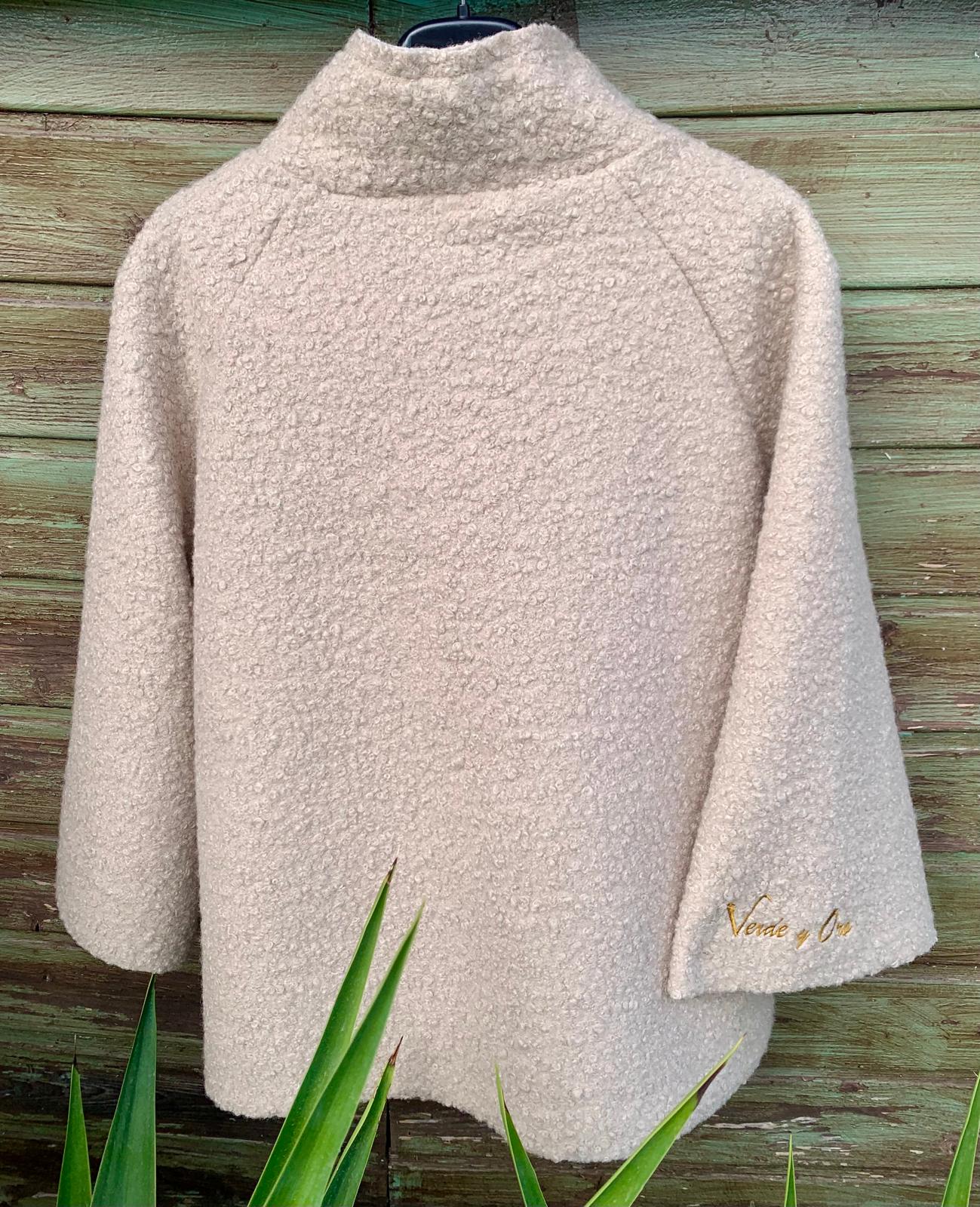 Chaqueta tipo poncho, con mangas anchas.