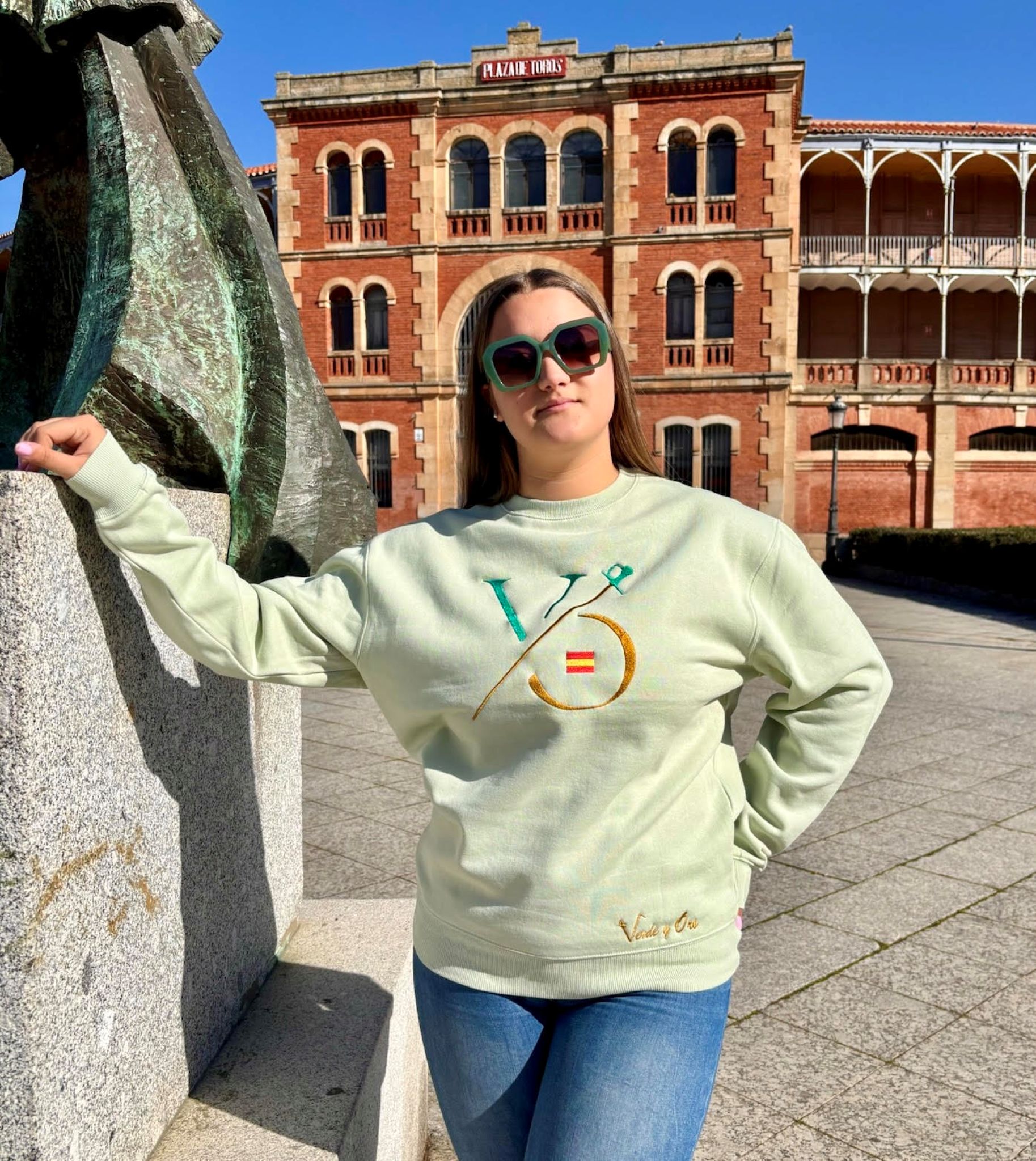 Sudadera en color verde agua con logo delantero bordado, Verde y Oro, Versión Original. Unisex